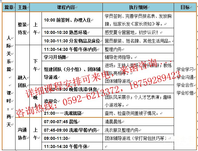 06:30-07:00 清理个人卫生 团队分教练/生活辅导员