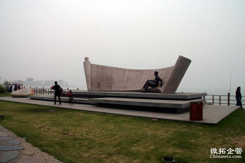 走进曾厝垵海湾,占地约3万平方米的书法广场马上映入眼帘。整个场地呈凹字形沿海岸线展开,充分利用了“海”的特色,以“书岛鹭胸怀,展大海豪情”为主题,并采用“以天为纸、以海为墨”的设计手法,整个设计方案融合了自然景观。东部为“书”字片区,内设文房四宝、遗墨拾芳等景观及便于修憩的笔架廊,着重展示我国历史上著名书法家及厦门当代书法家的书法作品;中部为“涛”字片区,在设计上强调其过渡性,主要以游玩沙滩为主,以嵌入沙滩的“涛”字连接东西片区;西部为“苑”字片区,在布局上以动态的参与功能为主,区域内用形似“苑”字的花架廊组成一个休闲性空间,内设“画沙、描红”,以墨会友广场及书吧等景点,便于书法活动的组织、使用。