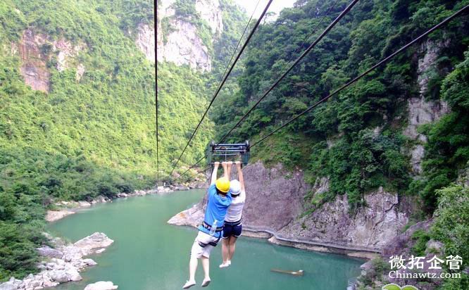 2、峡谷运动乐园:携手并进、抽板过河、飞檐走壁、荡绳过河、凌空漫步、勇往直前、高空溜索、浮桩桥、飞夺泸定桥等;